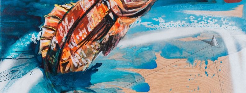 |   Title: The One Description: “Influenced by a David Sedaris’s story about a 4 burner stove that illustrates the facets of your life, he says that in order to be successful you have to put two out. This painting is a symbol for the one thing that is most important to me, out of work, health, friends and family.” Katie Blundell Artist 2015