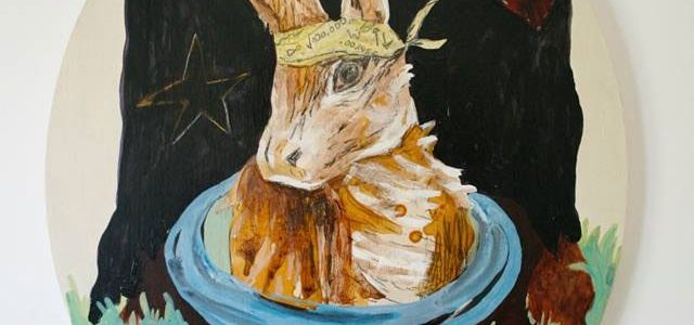 Acrylic and mixed media painting on poplar floating panel, 500mm H x 1200mm W, 2015.