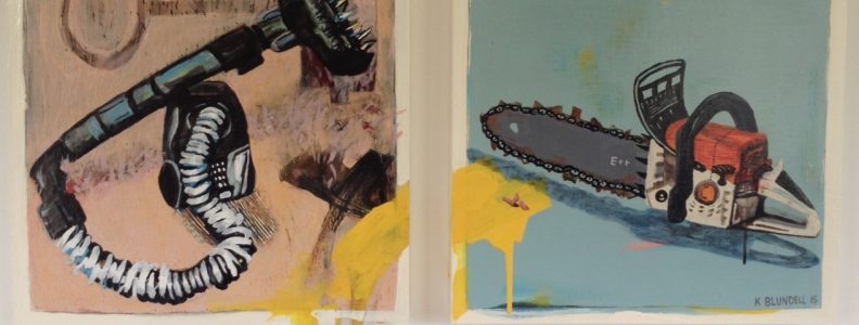Title: Beauty and the beast Description: Beauty and the beast’ is a painted diptych that was created in response to moving to the country, where physical tasks made me question my position on the roles we take. I have been influenced by New Zealand Feminist painters Sylvia Siddell and Jacqueline Fahey, as they too have been inspired by their surrounding environments. The subject matter of a vacuum cleaner and a chainsaw, symbolise gender norms and question their relevance in today’s world. These everyday objects take on lives and can be seen as people duelling and or one person’s internal gender battle. I have used typical male and female colours to play and mixed the balance. The title alludes to the fairy tale story, but in this open ended narrative the beast is the vacuum cleaner, which plays the part of irrational powerful woman whilst the chainsaw is the calm male antagonist. There is no resolution just a constant push and pull between the two, as they fight for roles, power and balance Katie Blundell 2015 |