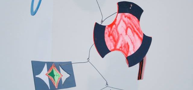 Title: Cool Pop No 2 Mobile Description: “Inspired by being pregnant, Alexander Calder’s mobiles, the organic forms of Dinosaur Designs and the Abstract expressionist painter Max Gimblett I started to create mobiles. As I started I was reminded of an educational legend “I believe this passionately: that we don’t grow into creativity, we grow out of it. Or rather we are educated out of it” Ken Robinson. I decided my mobiles would be Kinetic Fine Art, open ended and for all ages. Cool Pop No 2 Mobile uses bright colour and simple geometric form, the process of making is organic with the sculpture growing like it has a mind of its own.” Katie Blundell 2014 |