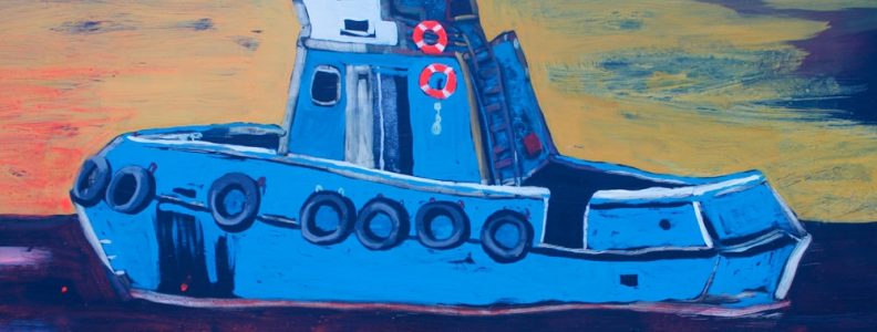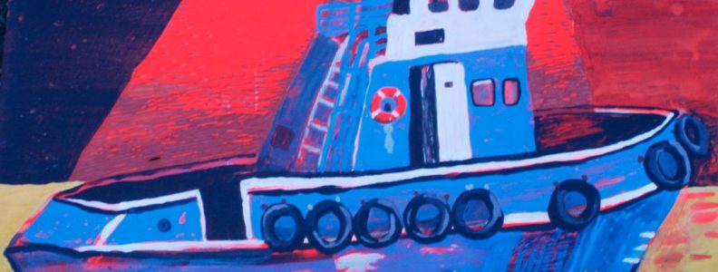 Title: Tugger Description: “24/7 Tugger was designed to be a diptych with the boats looking like they will crash into each other. They also work by themselves as individuals. They are a comment on the habitual nature of our lives and challenge us, to not take things too seriously.” Katie Blundell 2013 |