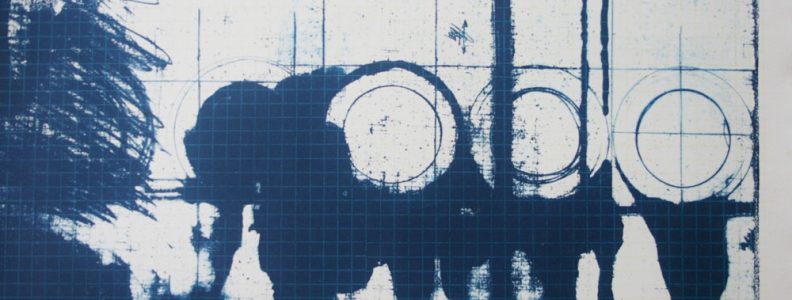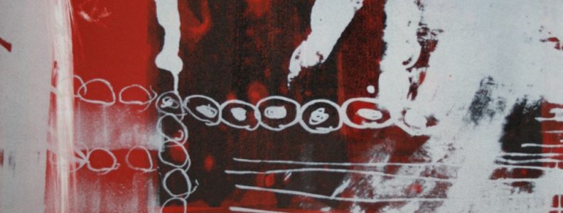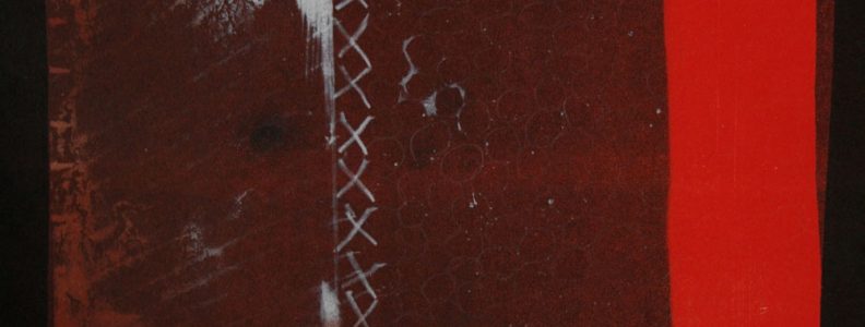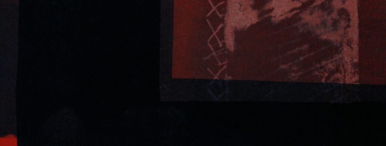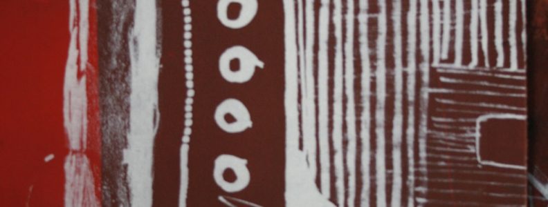Title: Dark Description: “Dark is part of the mind map series which uses the aboriginal tradition of capturing events and knowledge in images, inspired by the country at night I used black paper to add mood to the print.” Katie Blundell 1997 |