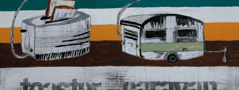 Title: Toaster and caravan Description: “The end of the world series was inspired by a trip to Ahipara, where I fell in love with the beauty and simplicity of these buildings in the environment and begged the question what do we need to be happy.” Katie Blundell 2010 |