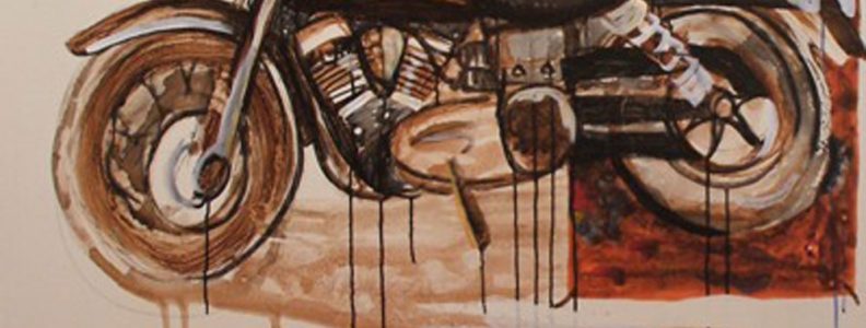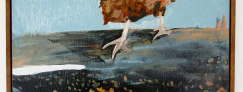 Title: Looking left crossing the road Description: “The Why did the chicken cross the road series was the first paintings I made after our big move from the city to the country. I was thinking about the decision we had made and the unknown future. I was reminded of the old joke, along with the countless possible answers.” Katie Blundell 2014 |