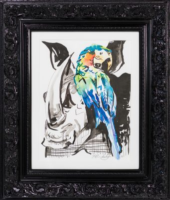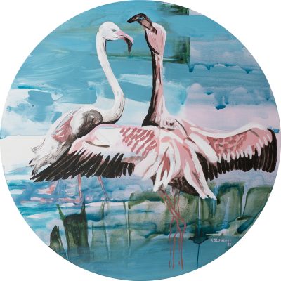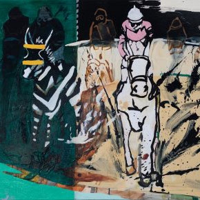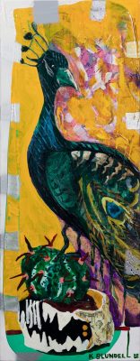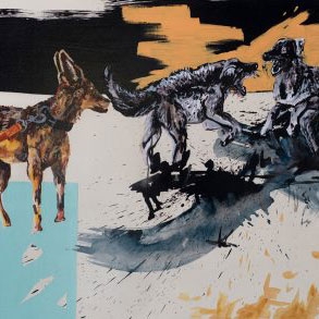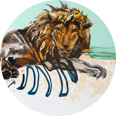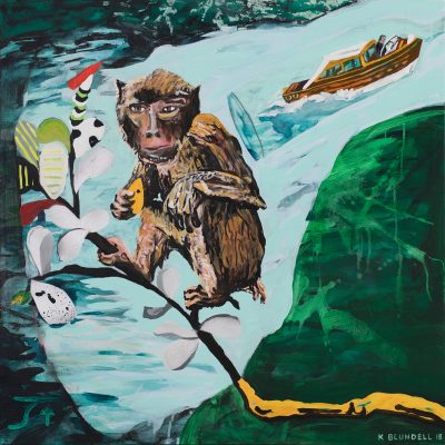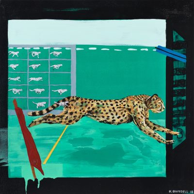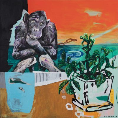 “With her deep interest in the human condition combined with a generous dose of humour, her paintings have a lot to declare. The urban dictionary describes the term ‘Urban Jungle’ as streets, alleys, railway systems and inner-city neighbourhoods, a metropolis characterized by densely packed residential buildings, businesses and a decaying industrial sector.  Blundell takes this as a cue to poke a finger at herself and society, of what we may have lost by building monstrosities, and becoming alienated from each other. She wants us to consider what it means to retain our connections. Blundell has used animals as models, this has enabled her to distance herself from the human issues reflected upon in the idiom as well as bringing in a lighter side.”